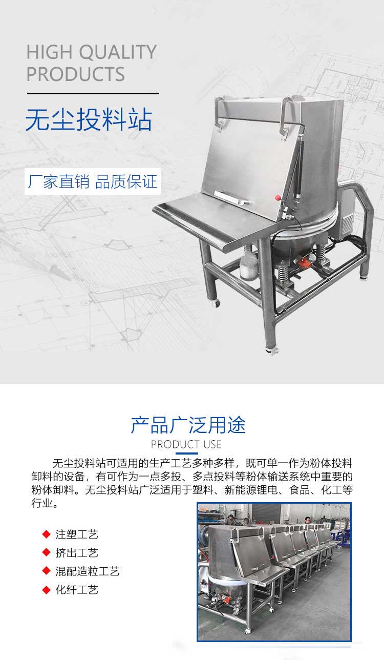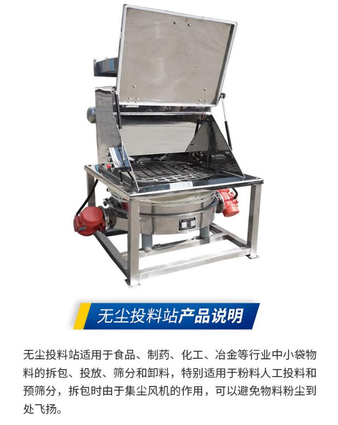 拆包時由于集塵風機的作用,可以避免物料粉塵到處飛揚。