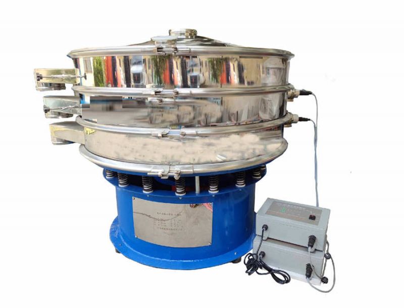 旋振篩是一種高精度細(xì)粉篩分機(jī)械,其噪音低、效率高,快速換網(wǎng)只需3-5分鐘,全封閉結(jié)構(gòu),適用于粒、粉、粘液等物料的篩分過濾。旋振篩是由直立式振動(dòng)電機(jī)作激振源,電機(jī)上、下兩端安裝有偏心重錘,將電機(jī)的旋轉(zhuǎn)運(yùn)動(dòng)轉(zhuǎn)變?yōu)樗?、垂直、傾斜的三次元運(yùn)動(dòng),再把這個(gè)運(yùn)動(dòng)傳遞給篩面。調(diào)節(jié)電機(jī)上、下兩端的相位角,可以改變物料在篩面上的運(yùn)動(dòng)軌跡。