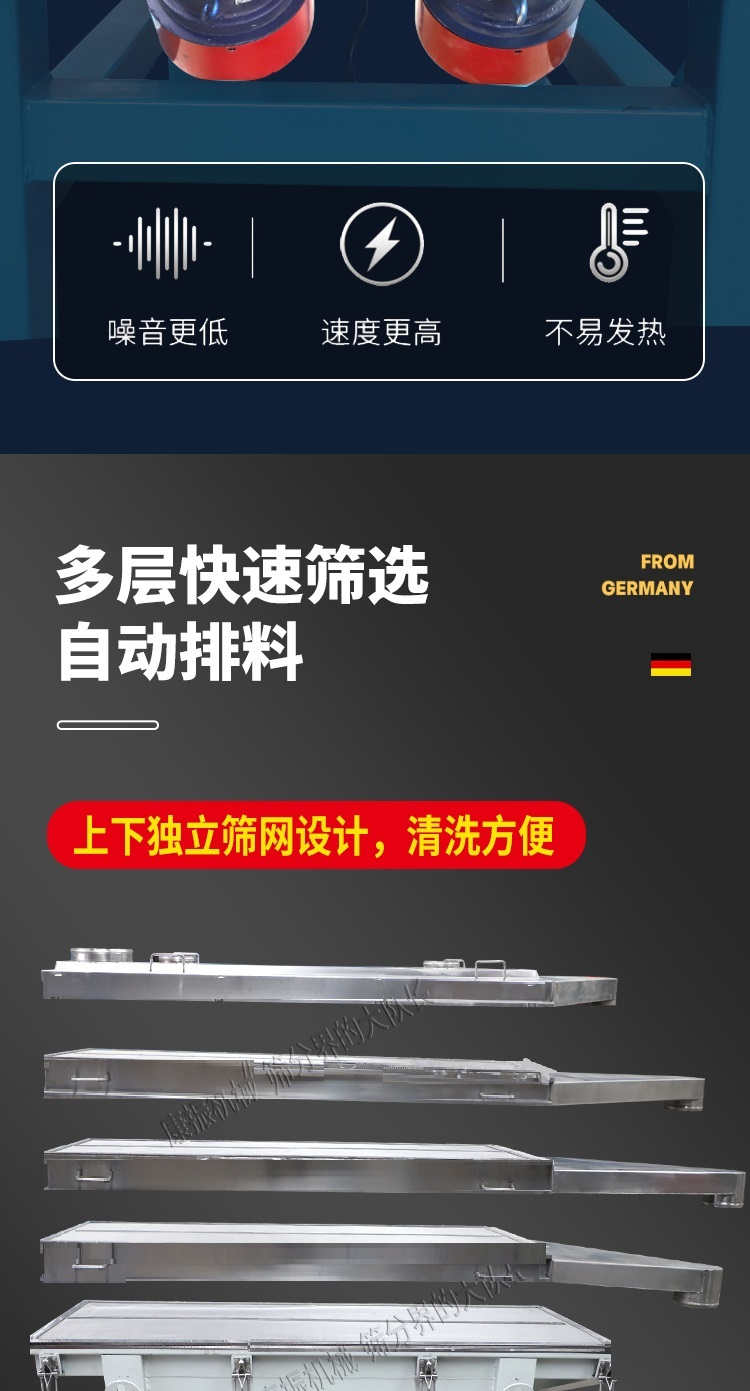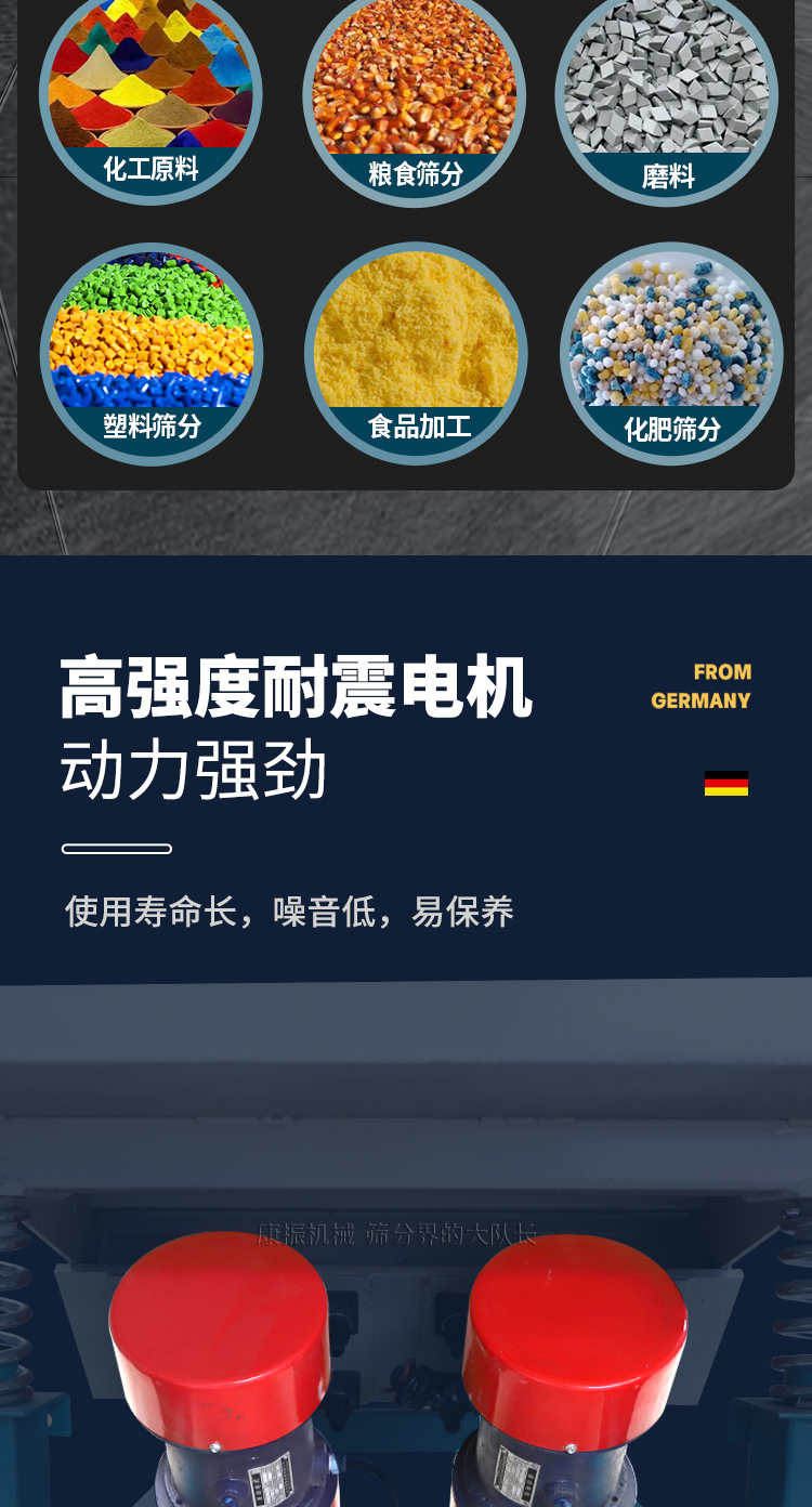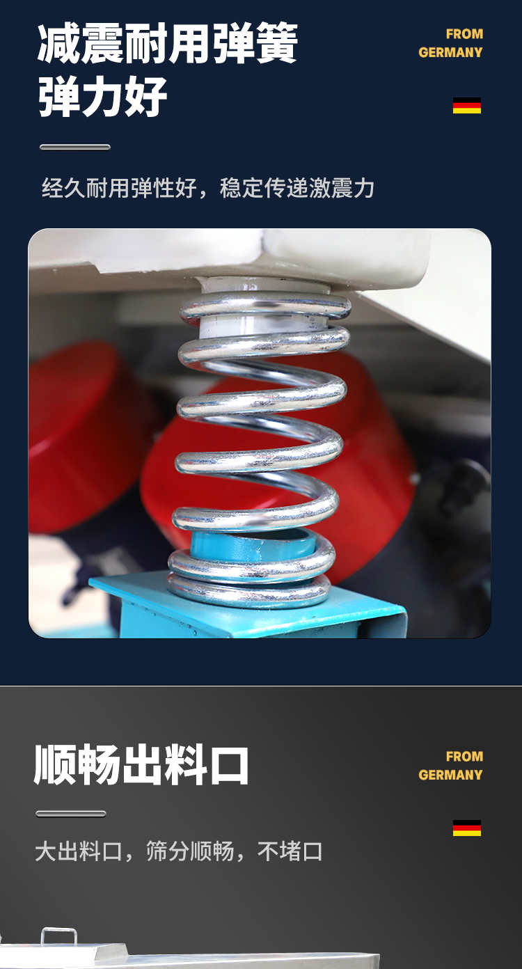 是以利用振動電機激振作為振動源,使物料在篩網(wǎng)上被拋起,同時受力向前做直線規(guī)則運動,物料從給料機均勻地進(jìn)入篩分機的進(jìn)料口,通過多層篩網(wǎng)產(chǎn)生數(shù)種規(guī)格的篩上物、篩下物、從各自的出口排出。具有耗能低、產(chǎn)量高、結(jié)構(gòu)簡單、易維修、全封閉結(jié)構(gòu),無粉塵溢散,自動排料, 更適合于高產(chǎn)能流水線作業(yè)。