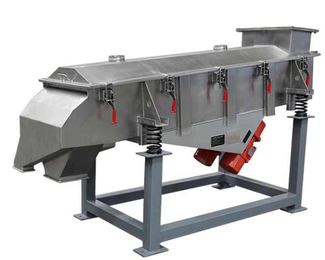直線振動(dòng)篩利用振動(dòng)電機(jī)激振作為振動(dòng)源,使物料在篩網(wǎng)上被拋起,同時(shí)向前作直線運(yùn)動(dòng),物料從給料機(jī)均勻地進(jìn)入篩分機(jī)的進(jìn)料口,通過(guò)多層篩網(wǎng)產(chǎn)生數(shù)種規(guī)格的篩上物、篩下物、分別從各自的出口排出。具有耗能低、產(chǎn)量高、結(jié)構(gòu)簡(jiǎn)單、易維修、全封閉結(jié)構(gòu),無(wú)粉塵溢散,自動(dòng)排料,更適合于流水線作業(yè)。